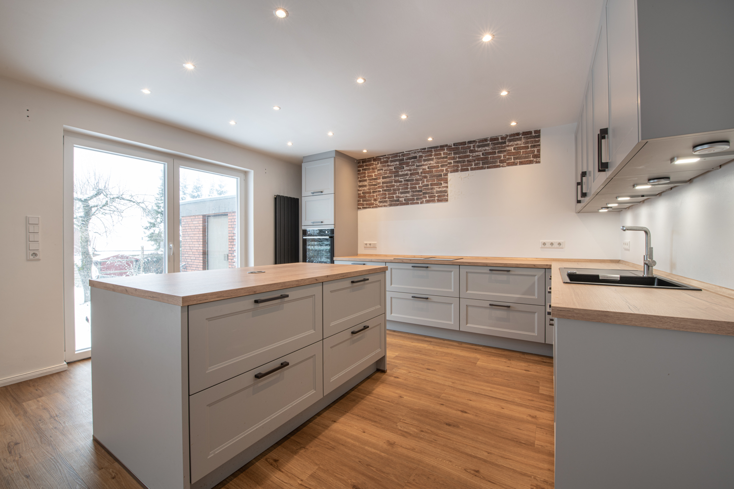 Im Erdgeschoss findet das Leben seinen wohl schönsten Platz im offen gestalteten Wohn-Essbereich mit offener Küche inkl. Küchenblock. Genießen Sie den Blick in Ihren Garten und kommen Sie nach getaner Arbeit und anderweitiger Verpflichtungen zur Ruhe. Zaubern Sie sich und ihren Lieben etwas tolles in deren Gesellschaft. Hier ist Platz zum Ausruhen aber auch zum Wohlfühlen, Relaxen und Ankommen. Der Garten ist ebenfalls eine wunderbar Oase der Ruhe und ein echtes Highlight!