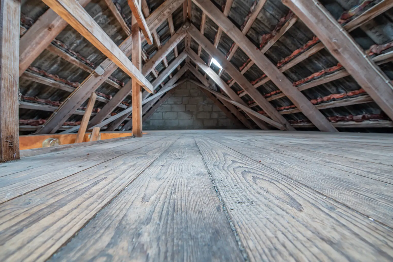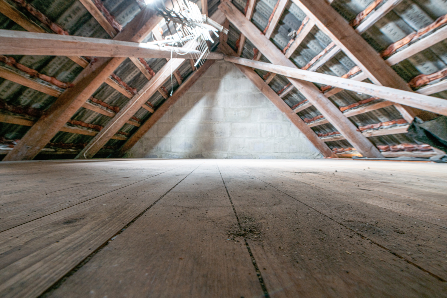 Viel weiter geht es nun nicht mehr nach oben. Eine Luke mit Ausziehtreppe führt noch zum Dachboden, der ebenfalls einen soliden Eindruck macht und nochmals einiges an Stauraum bietet, falls Sie noch den ein oder anderen Umzugskarton aufbewahren möchten. Aber ehrlich gesagt, denke ich nicht, dass Sie in den nächsten Jahren nochmals welche brauchen werden. Der Kaminfeger muss auch nicht mehr kommen, da der Kamin aufgrund des Fernwärmeanschlusses nicht mehr benötigt wird und somit auch nicht mehr gefegt werden muss.