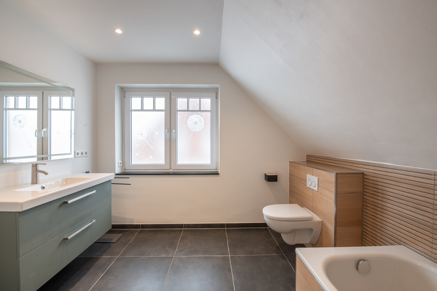Das Badezimmer (auch mit großen Fenster) wurde im letzten Jahr ebenfalls nochmals ganz neugestaltet und neben der Dusche um eine Badewanne erweitert. Eine Badewanne ist einfach ein MUSS!