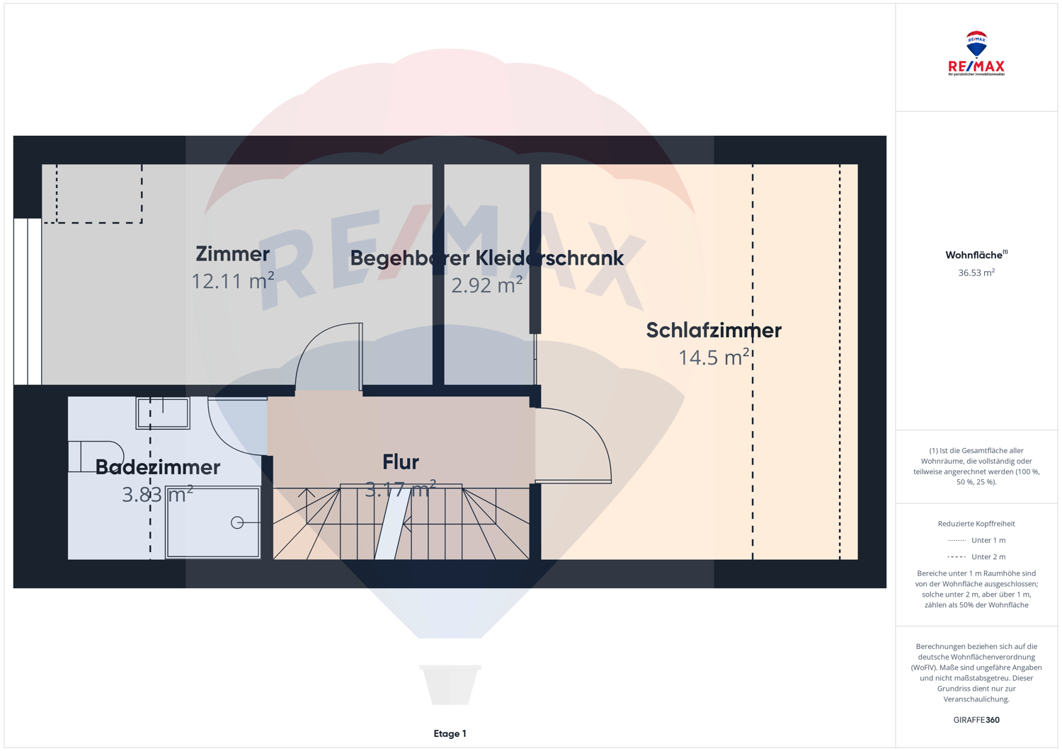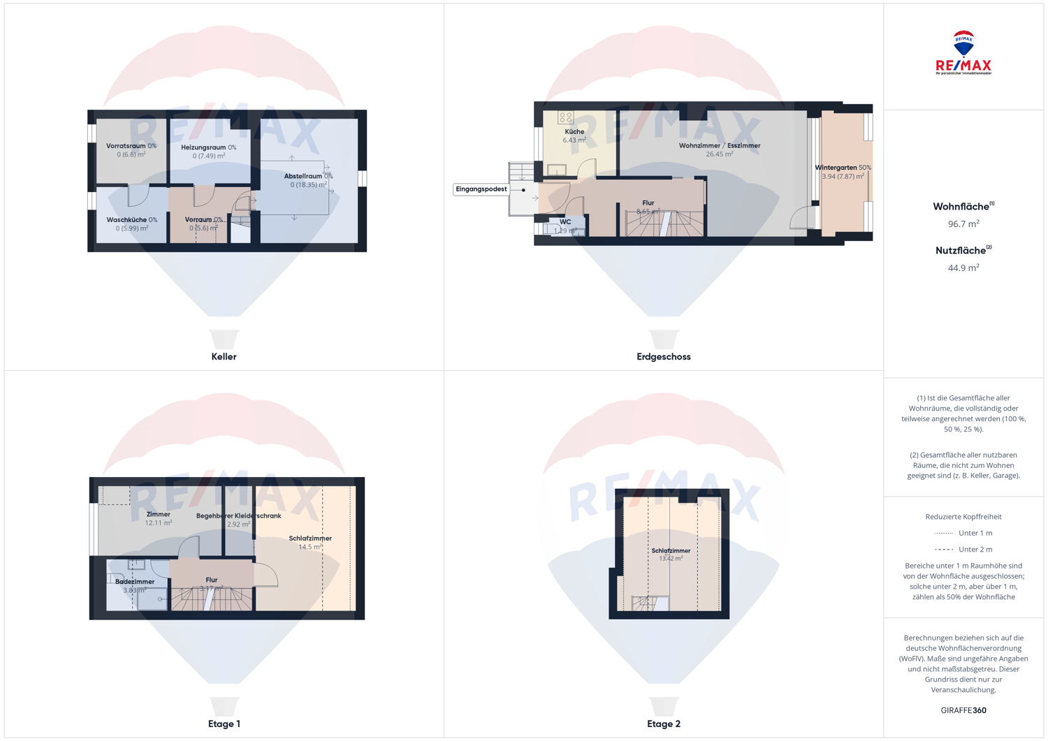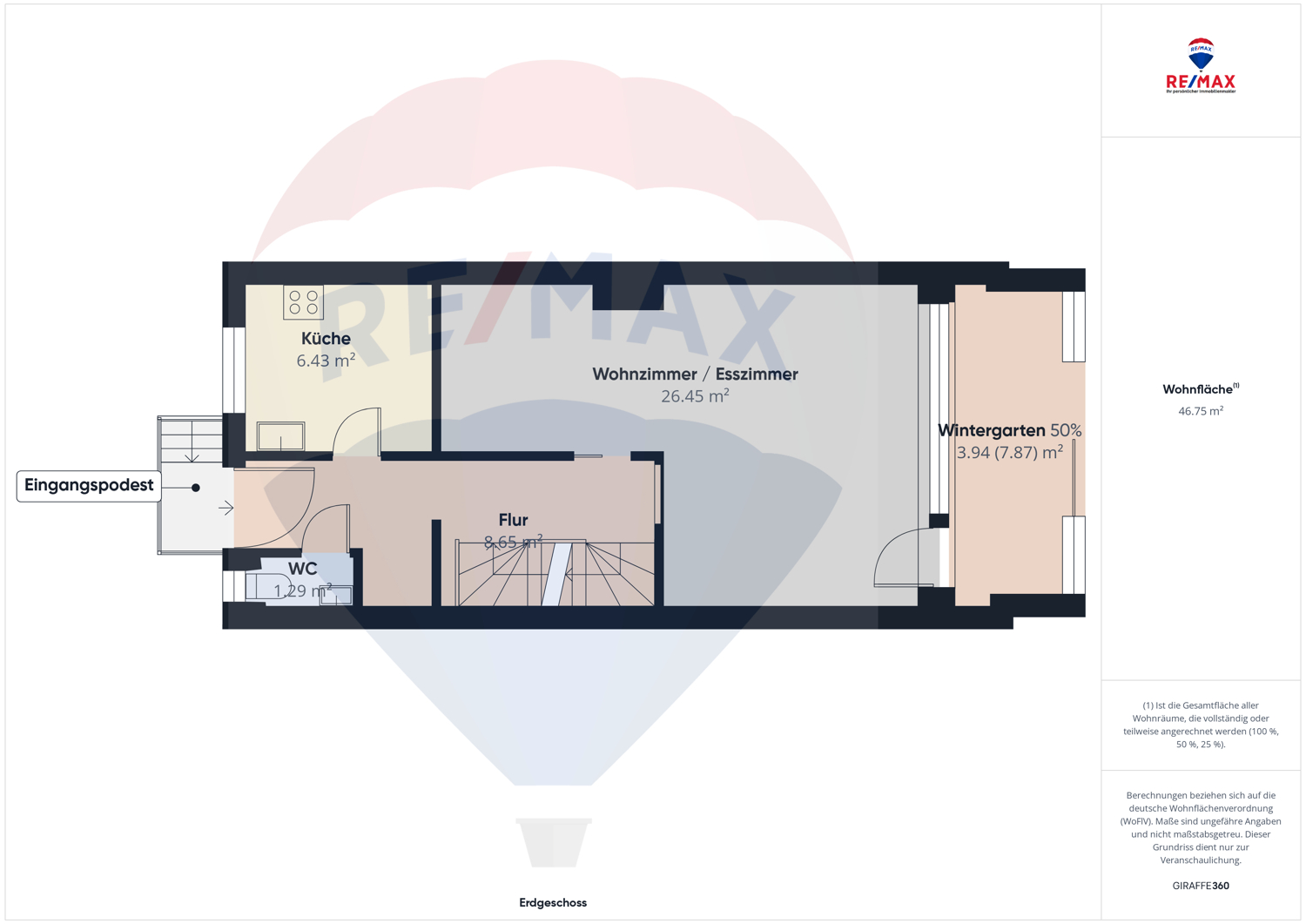 Es wird darauf hingewiesen, dass es sich bei der Wohnflächenangabe um die Wohn-Nutzfläche handelt.