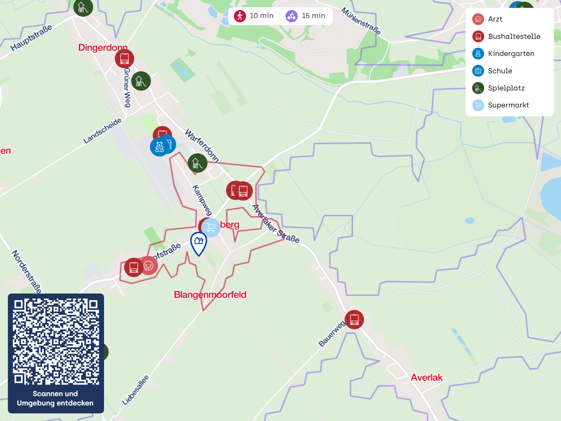 Die Anbindung an den öffentlichen Nahverkehr ist hervorragend, mit einer Bushaltestelle nur wenige Schritte entfernt. Für die Freizeitgestaltung stehen mehrere Spielplätze zur Verfügung, die für Spaß und Bewegung sorgen. Die Nähe zur Autobahn ermöglicht zudem eine schnelle Erreichbarkeit der umliegenden Städte. Der nächste Flughafen ist in etwa einer Stunde erreichbar, was für Reisende von Vorteil ist.